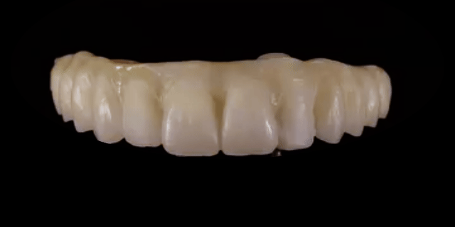This animation shows the laboratory process of creating a custom upper dental prosthesis.